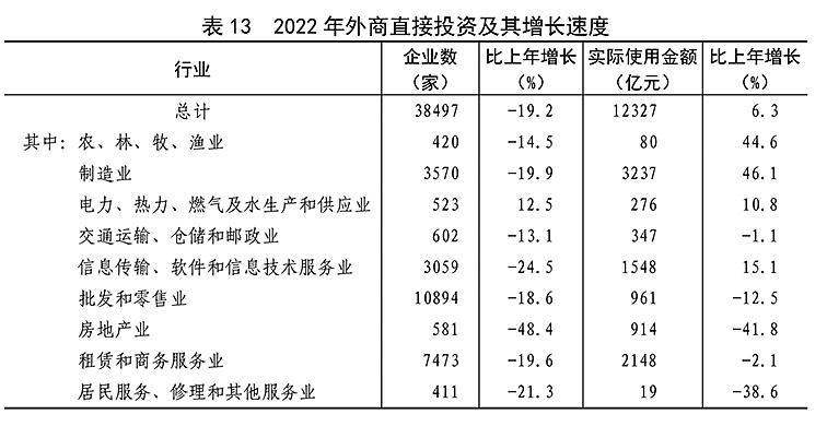 [42]2022年外商投资统计调查制度进行修订,外商直接投资新设立企业数量、实际使用外商直接投资金额为包含银行、证券、保险领域的全口径数据,增速按可比口径计算。