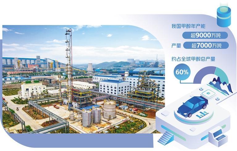 值得关注的是,我国甲醇生产原料来源广泛、经济体量大,具有全产业链可持续发展基础。中国氮肥协会发布的数据显示,我国甲醇年产能超9000万吨,产量超7000万吨,约占全球甲醇总产量的60%。甲醇的制备和就地应用,可以助力山西、陕西等能源大省经济转型升级,推动产业高质量发展。