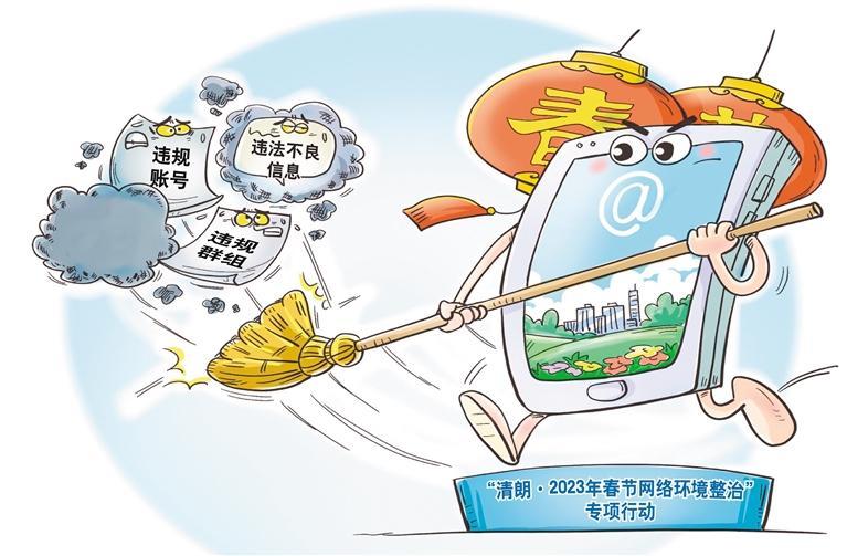 中央网信办近期部署开展“清朗·2023年春节网络环境整治”专项行动,各网站平台加大发现处置力度,集中查处一批违法违规典型案例,有效遏制网上突出问题,为广大网民营造出良好的春节舆论氛围。截至目前,重点平台累计拦截清理违法不良信息119万余条,处置违规账号、群组16万余个。此次专项行动有效遏制了网络乱象在春节期间反弹反复的势头,及时发现处置了一些网络生态新问题新苗头,整治工作取得预期成效。未来,应持续深入开展“清朗”系列专项行动,下大力气整治人民群众反映强烈的问题乱象,努力营造更加清朗的网络空间。(时 锋)