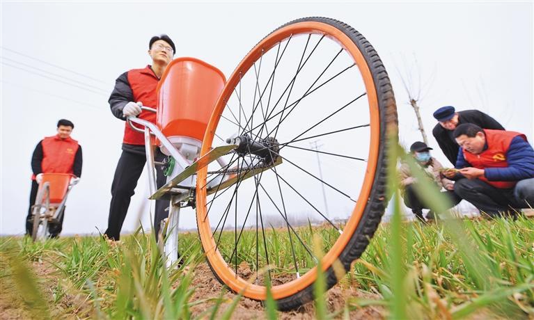 ◀3月2日,山东省阳谷县李台镇杨店村,党建联盟乡村振兴志愿服务队在田间帮助村民开展春管作业。