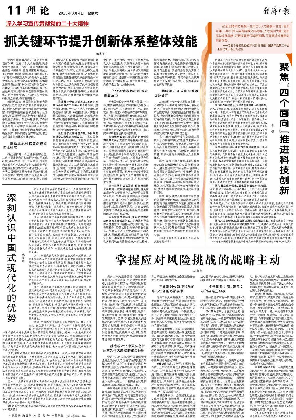 党的二十大报告强调:“从现在起,中国共产党的中心任务就是团结带领全国各族人民全面建成社会主义现代化强国、实现第二个百年奋斗目标,以中国式现代化全面推进中华民族伟大复兴。”完成新时代新征程党的中心任务,必须牢牢掌握战略主动,应对更加艰巨的风险和挑战、解决更加错综复杂的矛盾和问题。