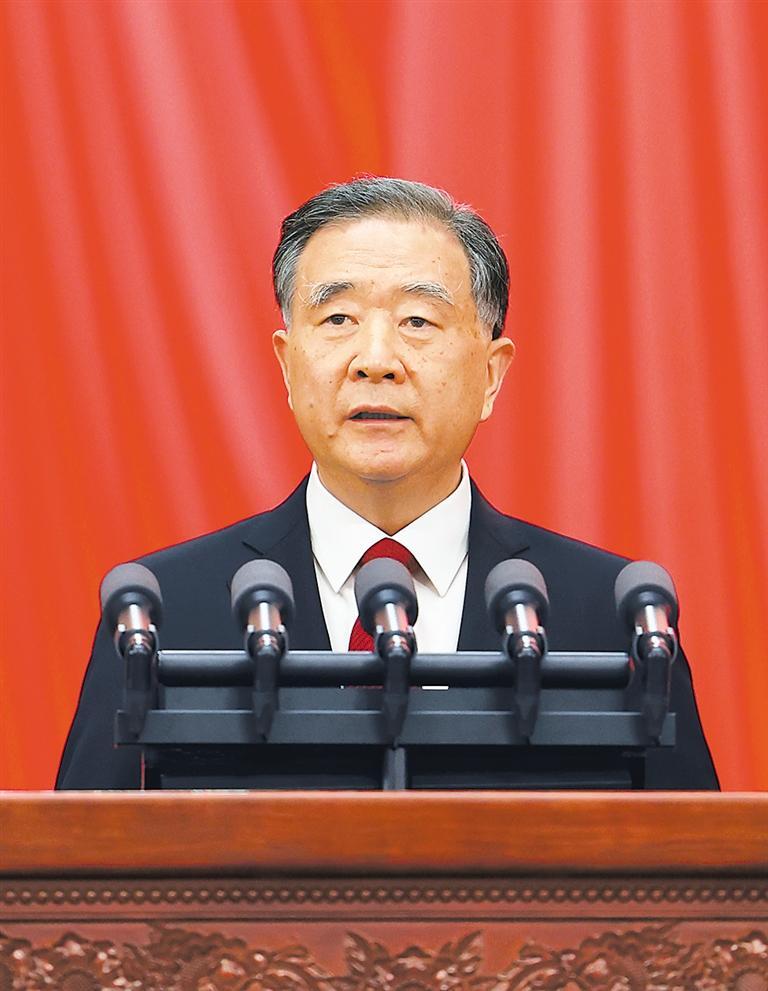 下午3时,王沪宁宣布大会开幕,全体起立,高唱中华人民共和国国歌。