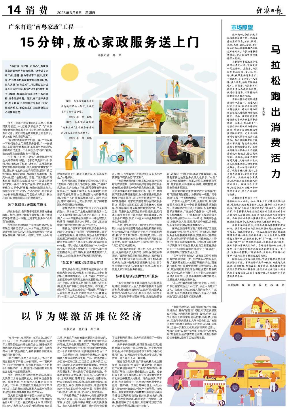 “不好找、不好用、不放心”,是家政服务行业长期存在的难题。记者近日走访广州、东莞、佛山等城市了解到,近年来广东精准把脉家政市场存在的问题,深入实施“南粤家政”工程,通过扶持龙头企业示范引领、探索“员工制”模式、数字化赋能、推动服务标准化等一系列举措,逐个击破难题。目前,广东共建成“南粤家政”基层服务站超过700个,省级扶持建设“家政一条街”、家政产业园、家政服务超市等载体50多个,评选省、市级家政服务龙头、诚信企业超过150家。在不少城市,打个电话15分钟家政服务送上门已经成为现实,群众在家门口就能获取安心的家政服务。