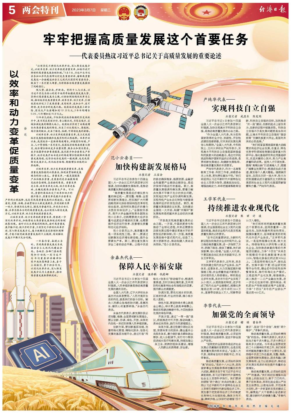习近平总书记5日参加十四届全国人大一次会议江苏代表团审议时强调,加快实现高水平科技自立自强,是推动高质量发展的必由之路。