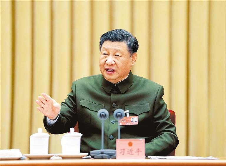 新华社北京3月8日电(记者张汨汨、梅常伟)中共中央总书记、国家主席、中央军委主席习近平8日下午在出席十四届全国人大一次会议解放军和武警部队代表团全体会议时强调,巩固提高一体化国家战略体系和能力,是党中央把握强国强军面临的新形势新任务新要求,着眼于更好统筹发展和安全、更好统筹经济建设和国防建设作出的战略部署。贯彻落实好这一部署,对全面建设社会主义现代化国家、全面推进中华民族伟大复兴,对实现建军一百年奋斗目标、加快把我军建成世界一流军队,都具有十分重要的意义。要统一思想认识,强化使命担当,狠抓工作落实,努力开创一体化国家战略体系和能力建设新局面。