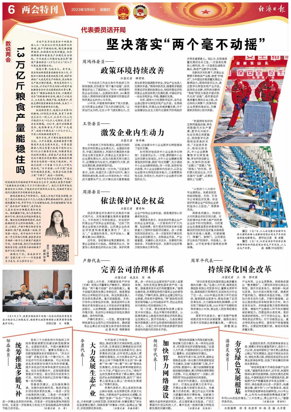 卢静代表表示,一方面,要完善中国特色国有企业现代公司治理体系,确保国有企业真正成为经营主体并按市场机制运营和获得要素资源。进一步优化企业国有资产出资人监管体制,加快实现经营性国有资产统一监管,提高国有资本运行和配置效率。“值得注意的是,改革要坚持党对国有企业的领导不动摇。”卢静代表说,国有企业建立现代企业制度,须体现中国特色,“特”就体现在把党的领导融入公司治理各环节、把企业党组织内嵌到公司治理结构之中。