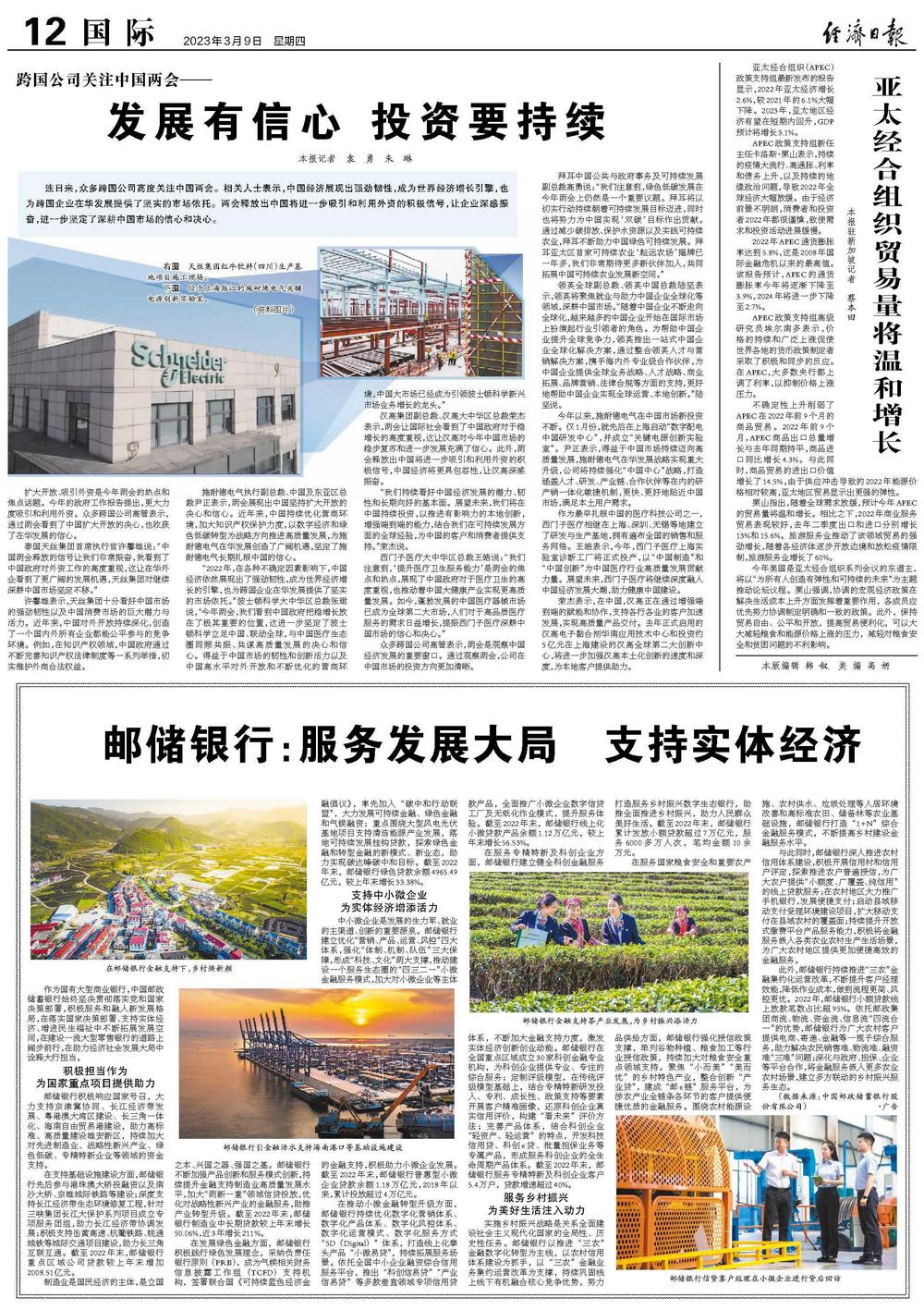 在支持基础设施建设方面,邮储银行先后参与港珠澳大桥投融资以及南沙大桥、京雄城际铁路等建设;深度支持长江经济带生态环境修复工程,针对三峡集团长江大保护系列项目成立专项服务团组,助力长江经济带协调发展;积极支持岳黄高速、杭衢铁路、皖通城铁等城际交通项目建设,助力长三角互联互通。截至2022年末,邮储银行重点区域公司贷款较上年末增加2008.51亿元。