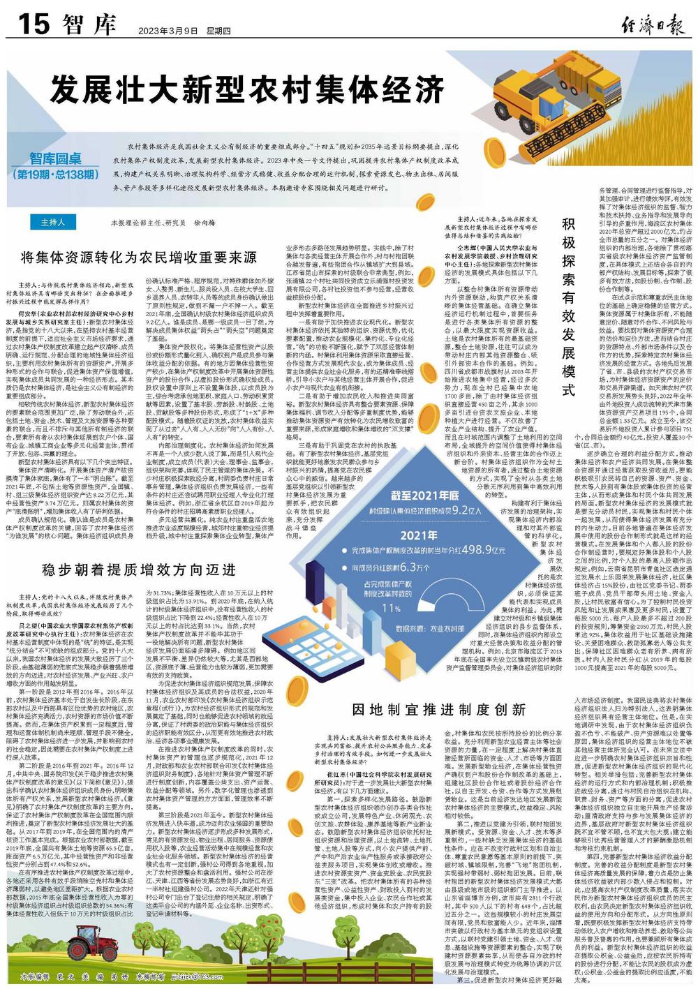 主持人:发展壮大新型农村集体经济是实现共同富裕、提升农村公共服务能力、完善乡村治理的有效手段。如何进一步发展壮大新型农村集体经济?