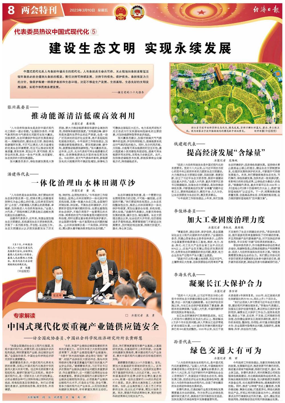 汤建伟代表表示,近年来,我国全面加强生态文明建设,系统谋划生态文明体制改革,开展了一系列根本性、开创性、长远性工作,生态文明建设从认识到实践都发生了历史性、转折性、全局性的变化。“今年政府工作报告提出,坚持山水林田湖草沙一体化保护和系统治理,实施一批重大生态工程,全面推行河湖长制、林长制。开展生态环境保护,不仅要抓好显性环境问题的防治,也要注重隐性的生态保护,不能仅局限于一些看得见的水污染、闻得到的空气污染等直观问题的防范和治理,同时也要注重生物多样性保护意识、农业面源污染等一些不直观的生态问题的解决。山水林田湖草沙是一个共同体,环环相扣,需从源头着手解决根本性的生态问题。”