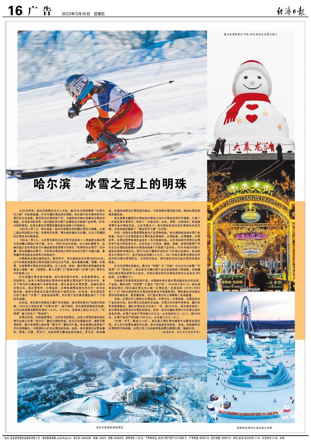 作为我国冰雪旅游的摇篮,哈尔滨冰雪大世界、太阳岛雪博会、冰灯游园会、亚布力滑雪度假区等观光体验类冰雪旅游产品驰名中外,吸引了海内外大量游客打卡参观体验。得天独厚的冰雪资源,底蕴深厚的冰雪文化,集冰雪观光、冰雪运动、冰雪休闲等多样化形式为一体的旅游体验,使哈尔滨多次当选冰雪旅游十佳目的地。60年来,哈尔滨逐步开发打造的“冰雪+”旅游发展格局,为冰雪产业的高质量发展打下了坚实的基础。