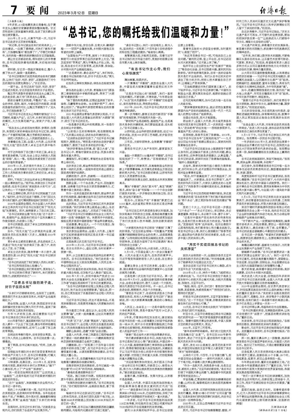 他们带来一片热土日新月异的变化、带来群众身边命运转变的故事,更带来当地百姓对习近平总书记的殷殷真情——“总书记,您的嘱托给我们温暖和力量!”