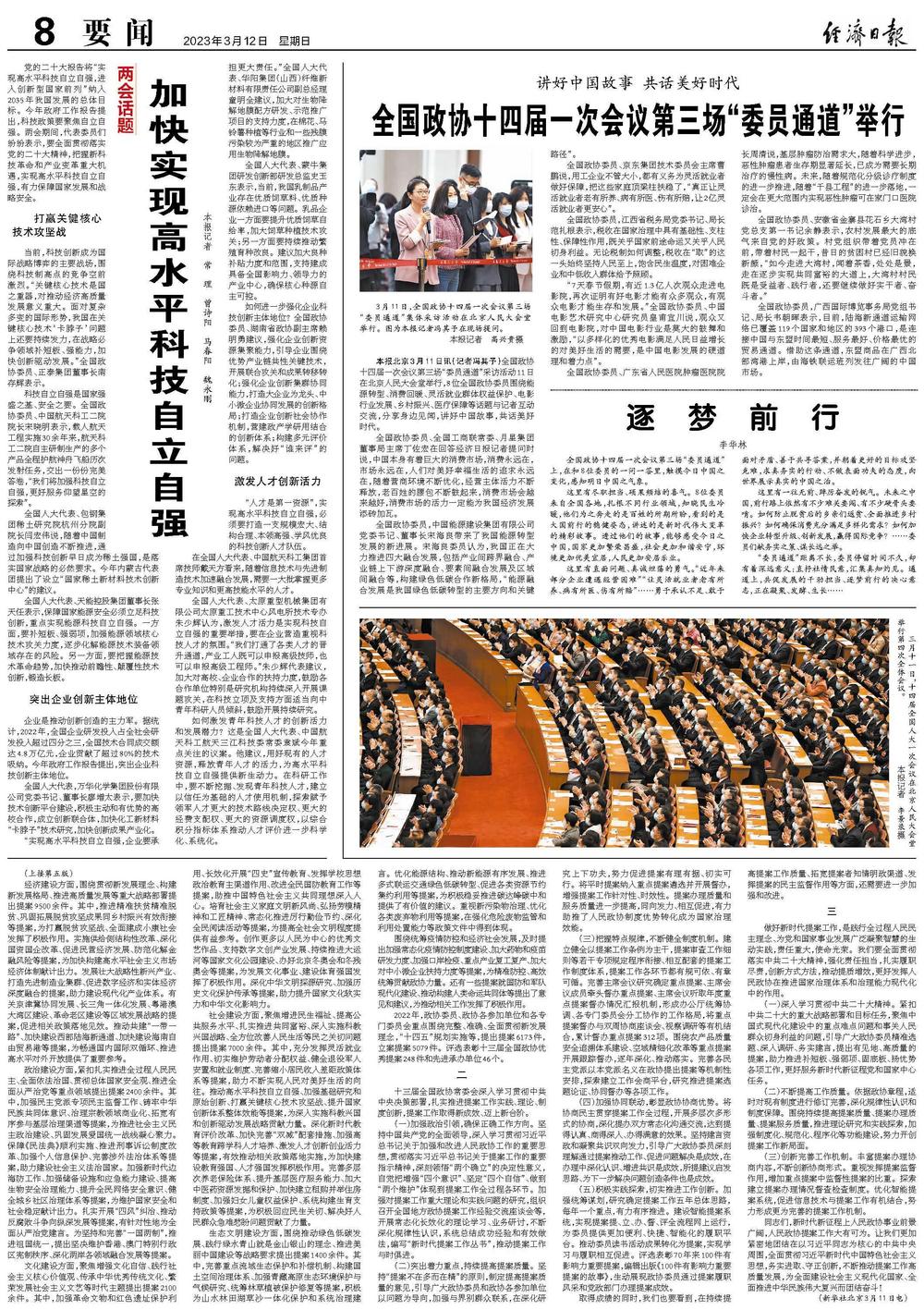 党的二十大报告将“实现高水平科技自立自强,进入创新型国家前列”纳入2035年我国发展的总体目标。今年政府工作报告提出,科技政策要聚焦自立自强。两会期间,代表委员们纷纷表示,要全面贯彻落实党的二十大精神,把握新科技革命和产业变革重大机遇,实现高水平科技自立自强,有力保障国家发展和战略安全。