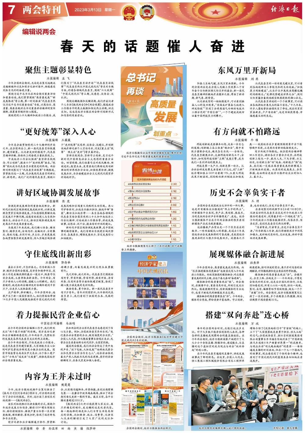 在今年代表委员通道的直播中,讲述发展故事成了鲜明特色。在这里,全国人大代表、徐工集团工程机械股份有限公司总工程师单增海介绍了《流浪地球2》中“宇宙级”的施工,立下了“大国重器就是要勇于担当、顶天立地”的志气;全国政协委员、浙江吉利控股集团有限公司董事长李书福自信地列出了“中国新能源汽车连续8年产销量世界第一”的成绩单,与观众共话“明天越来越好”的愿景……每场通道直播的时间虽短,但在一个又一个接地气的故事里,观众感受到了个体的奋斗精神,也看到了中国式现代化的蓝图真真切切地在身边展开。