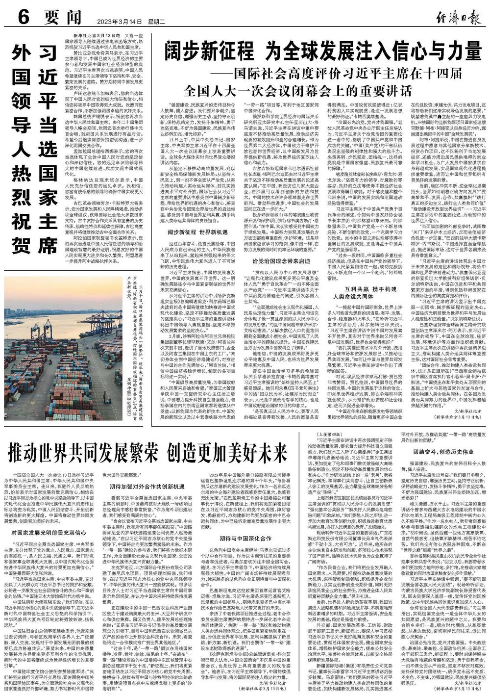 当前,地区冲突不断、逆全球化思潮抬头,世界如何朝着正确方向发展?“要高举和平、发展、合作、共赢旗帜”“践行真正的多边主义,践行全人类共同价值”“推动建设开放型世界经济”……习近平主席在讲话中的重要论述,为动荡中的世界注入信心。