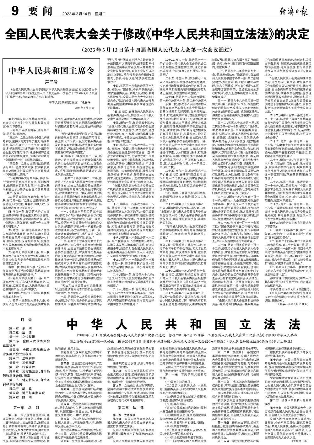 《全国人民代表大会关于修改〈中华人民共和国立法法〉的决定》已由中华人民共和国第十四届全国人民代表大会第一次会议于2023年3月13日通过,现予公布,自2023年3月15日起施行。
