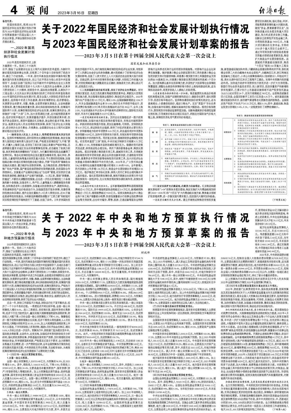 受国务院委托,现将2022年中央和地方预算执行情况与2023年中央和地方预算草案提请十四届全国人大一次会议审查,并请全国政协各位委员提出意见。