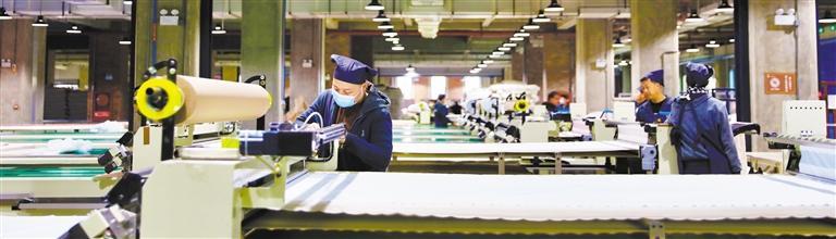 ◀河北省宁晋县童泰婴幼儿服饰有限公司,工人在裁剪面料。宁晋县依托纺织服装等劳动密集型企业,将就业岗位送到群众家门口,帮助他们实现就业增收。
