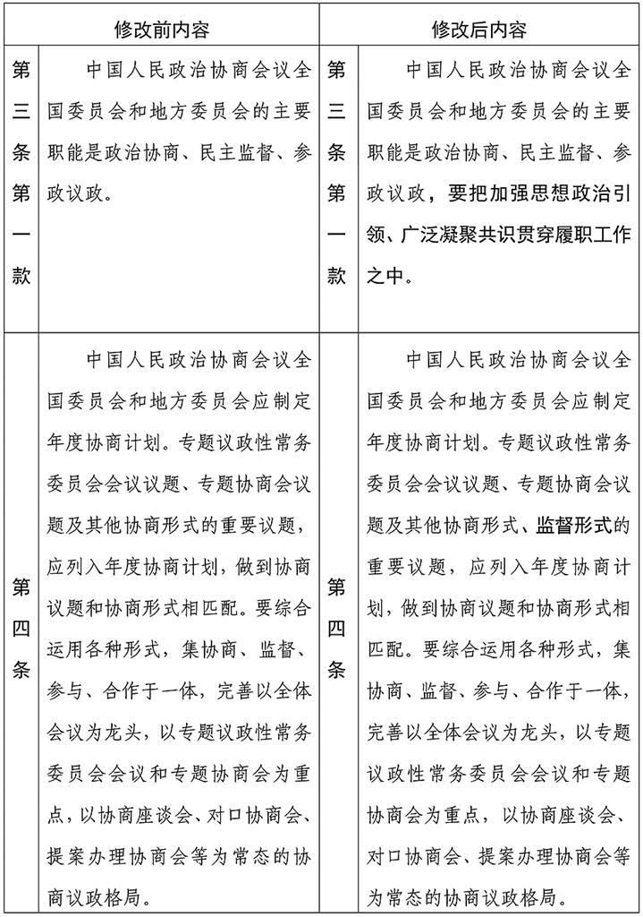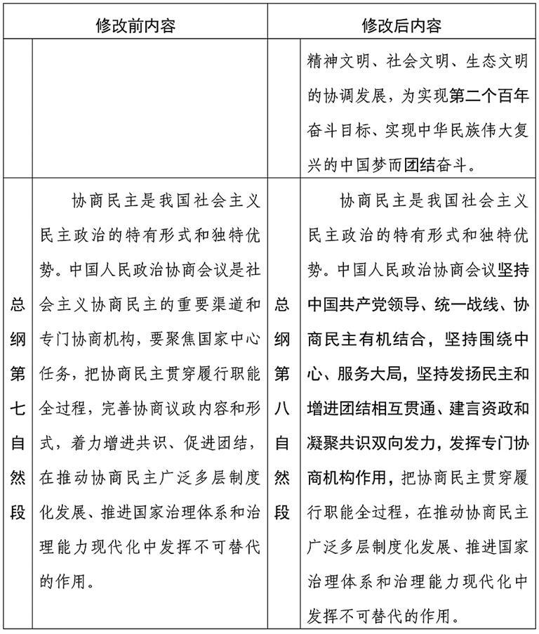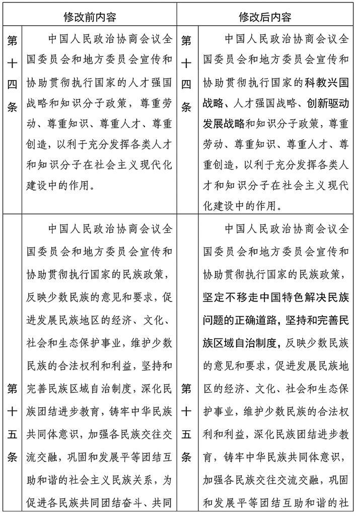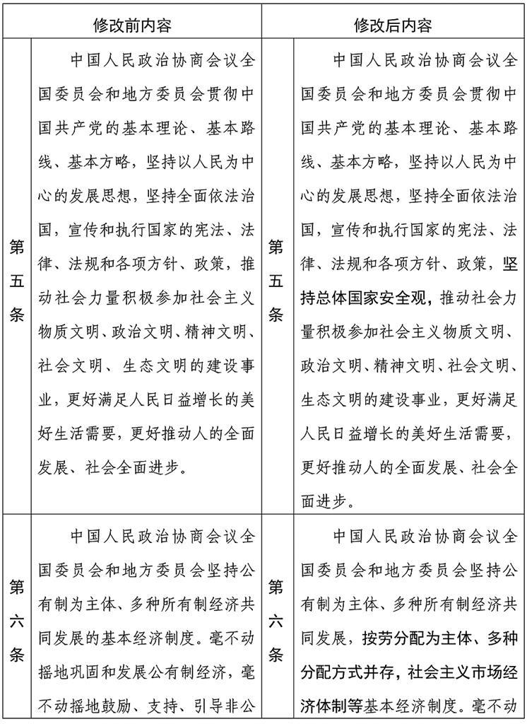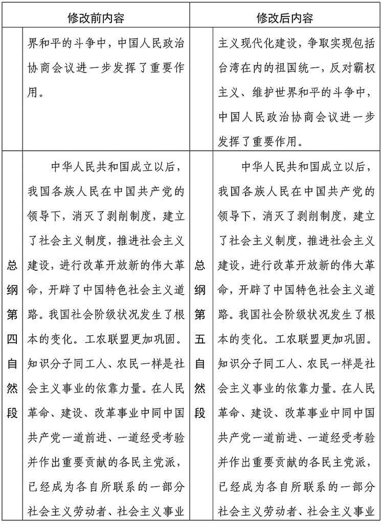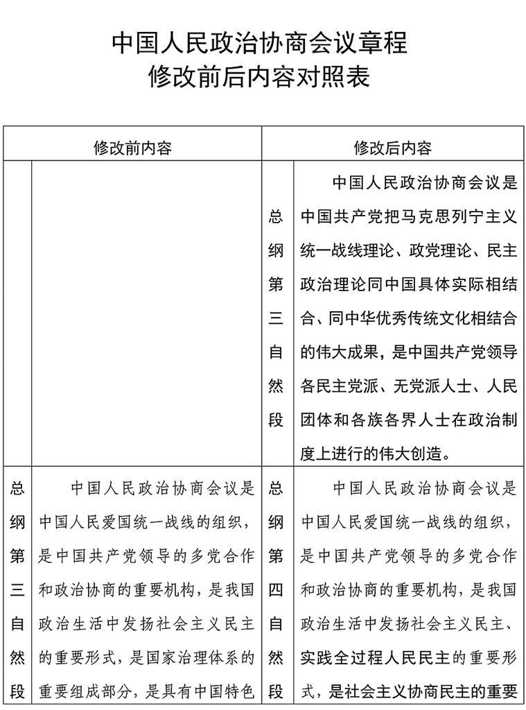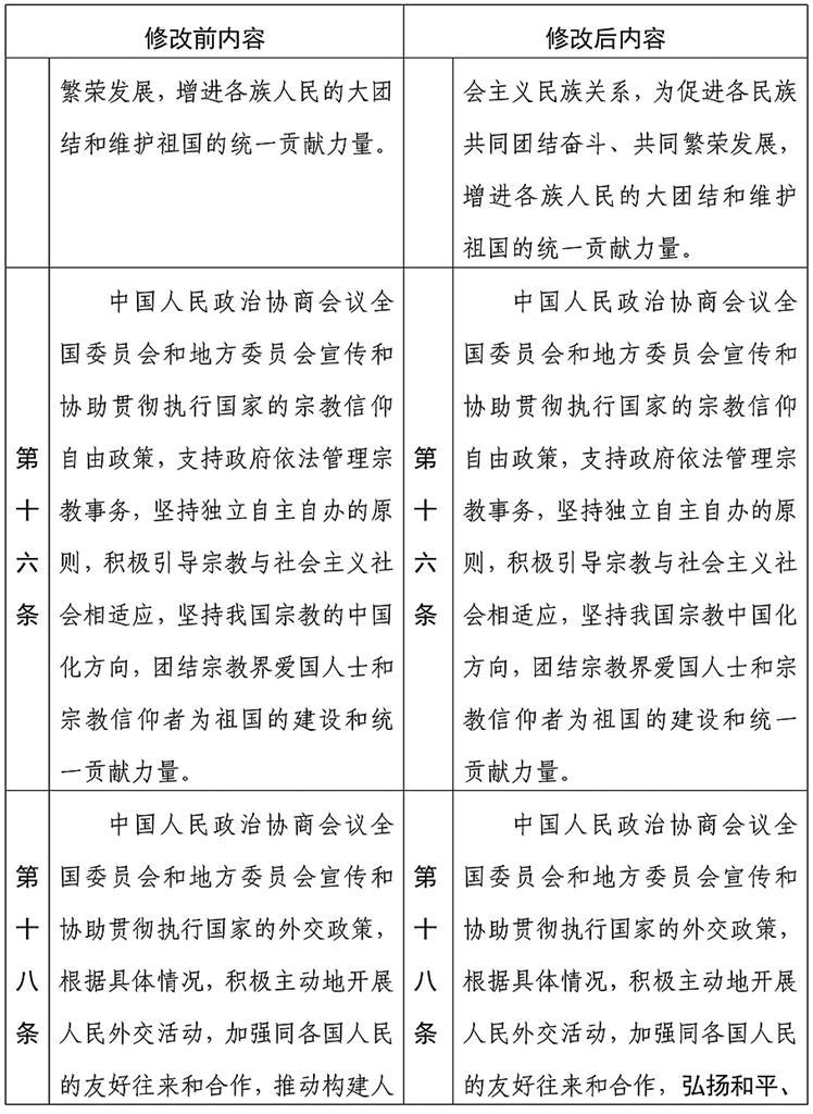 中国人民政治协商会议章程修改前后内容对照表