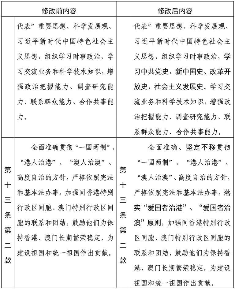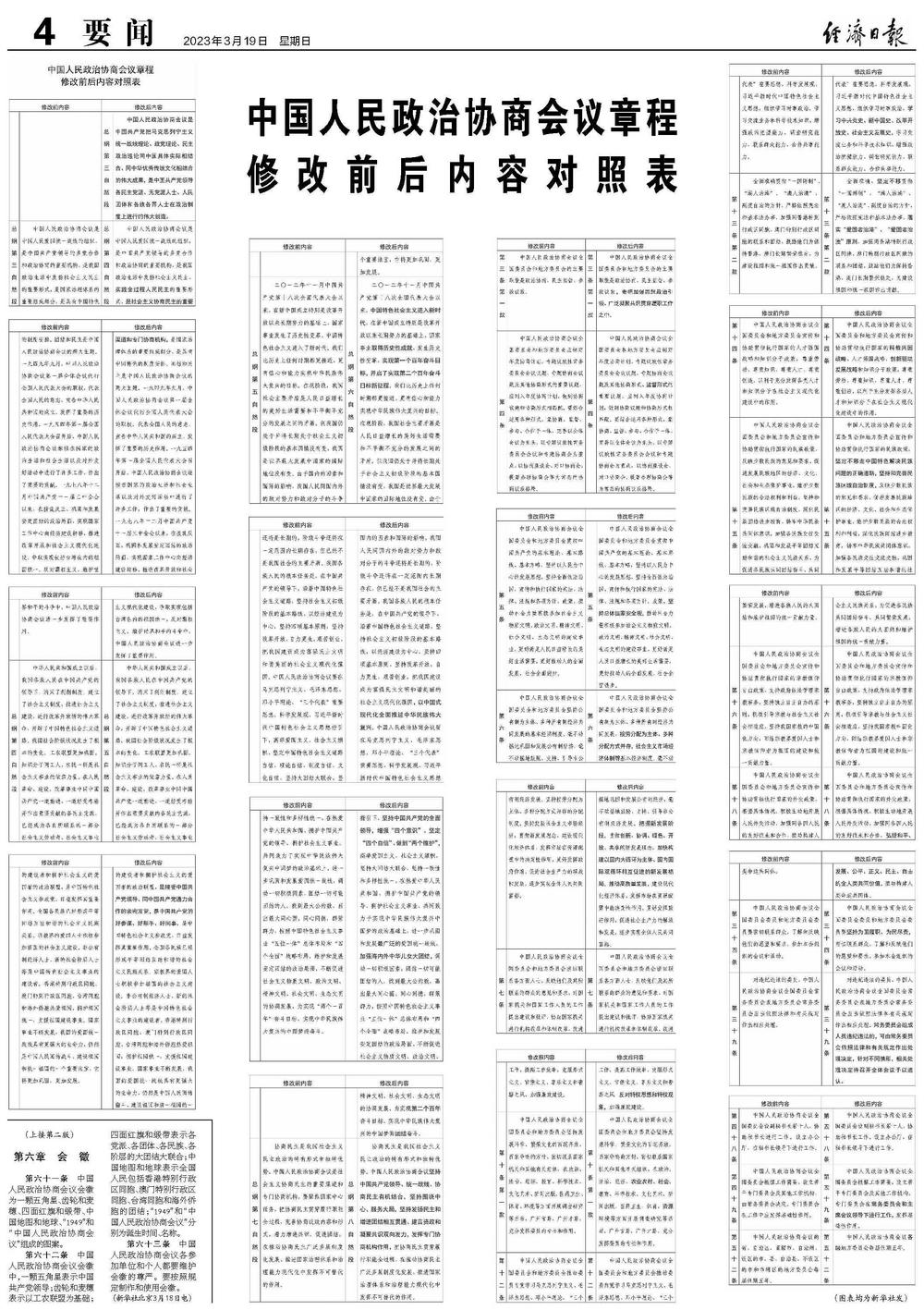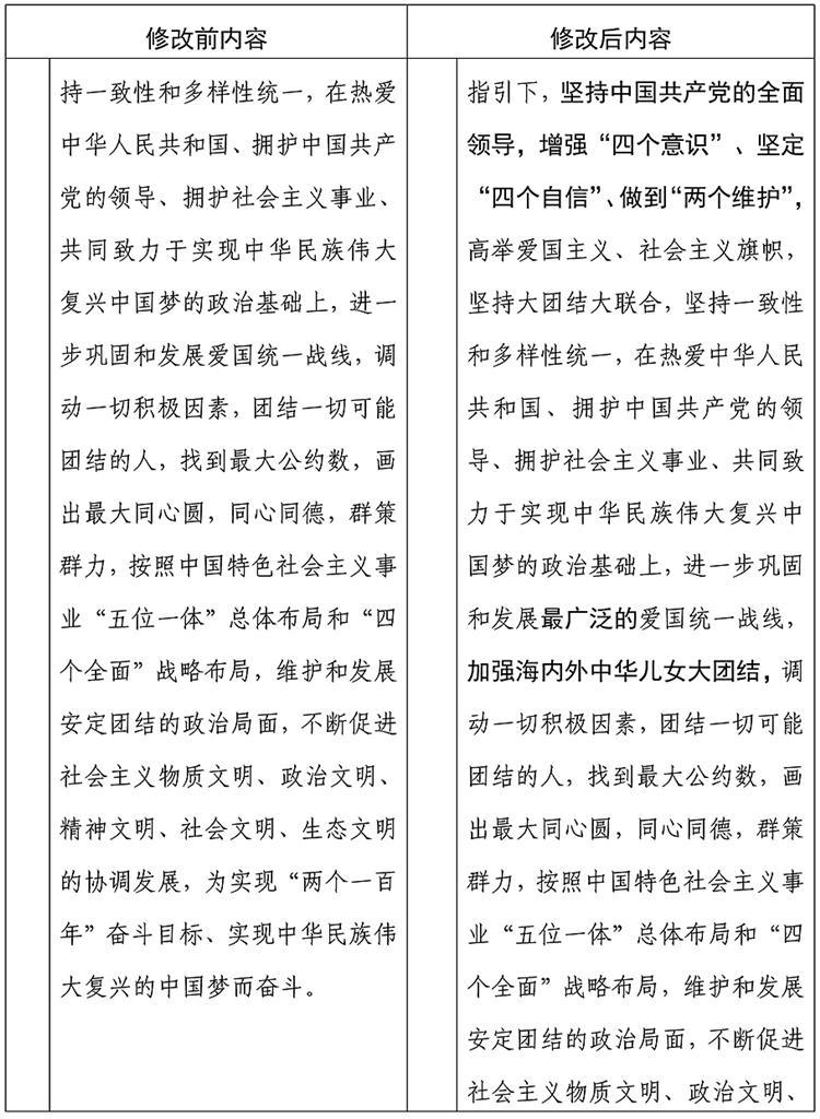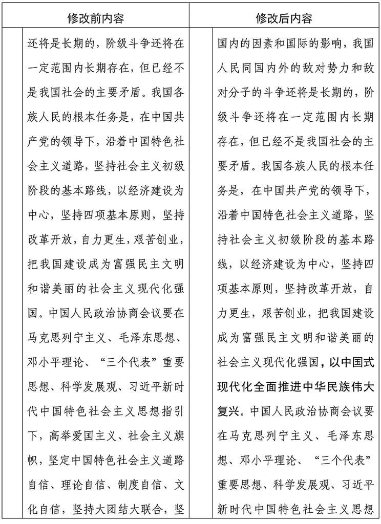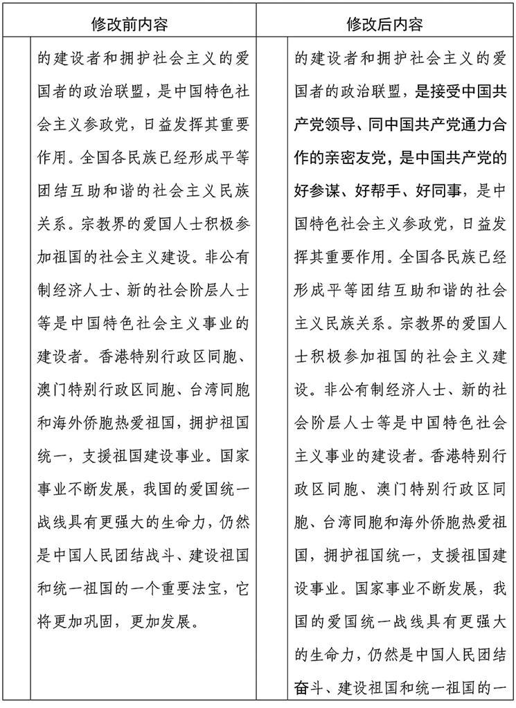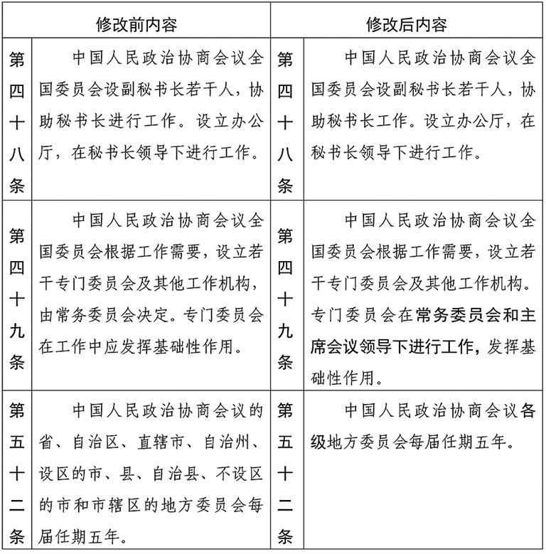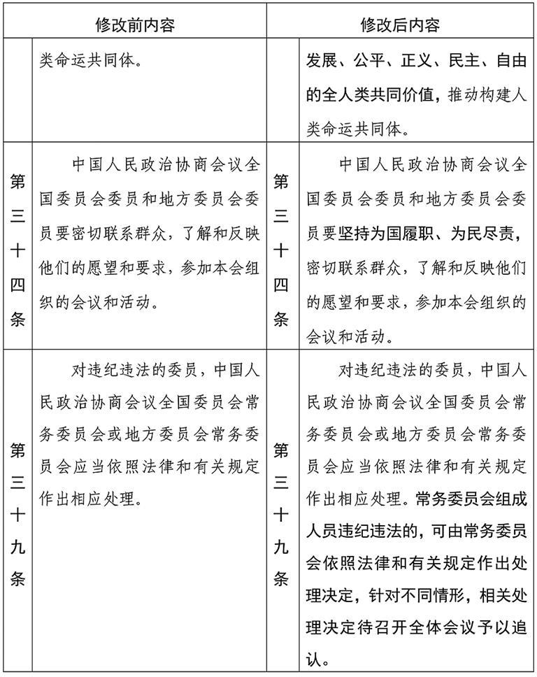 中国人民政治协商会议章程修改前后内容对照表