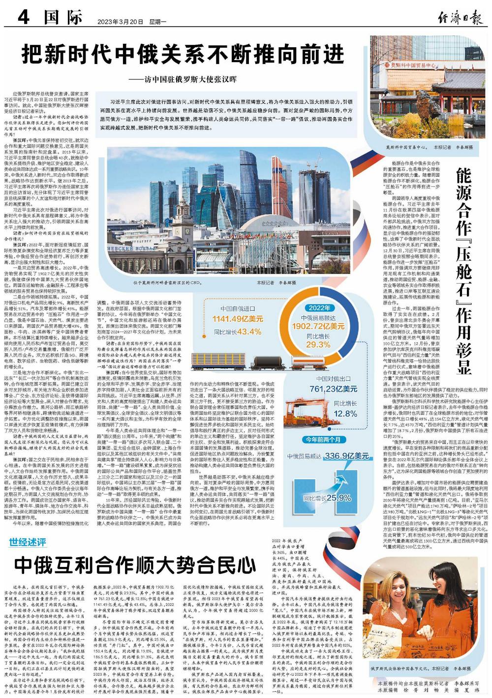 应俄罗斯联邦总统普京邀请,国家主席习近平将于3月20日至22日对俄罗斯进行国事访问。就此,中国驻俄罗斯大使张汉晖接受经济日报记者采访。