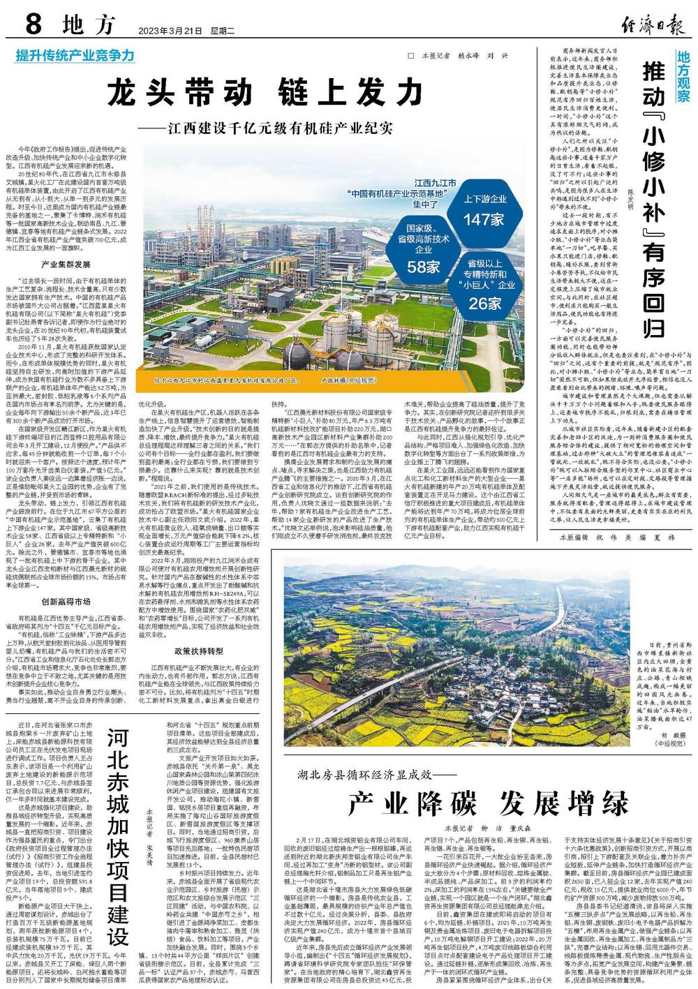 今年《政府工作报告》提出,促进传统产业改造升级、加快传统产业和中小企业数字化转型。江西有机硅产业发展迎来新的机遇。