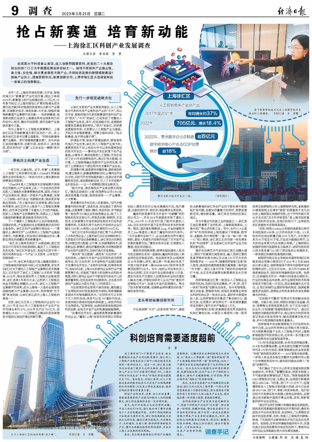 “ChatGPT是人工智能技术在智能聊天领域的应用案例,从产业培育上讲,一个出色的应用背后是人工智能技术要素聚集的成果。因而,对地方产业发展而言,要进一步提升产业聚集度,发挥‘人工智能+各行各业’的赋能优势,提供更多智能应用供给。”在上海市徐汇区委常委、副区长俞林伟看来,徐汇区作为上海首个人工智能发展集聚区,近年来已经积累了丰富的人才与技术储备,抢抓人工智能产业的集群优势,构筑以人工智能为基础的新赛道、新动能是未来的方向。