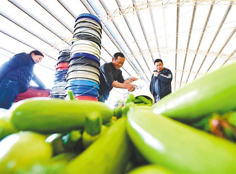 3月20日,山东省阳谷县阿城镇党员志愿者在帮助菜农卸菜。近年来,阳谷县阿城镇常楼村党支部积极与蔬菜合作社对接共谋蔬菜产业规模化、品牌化、数字化发展,助力农民增收,推进乡村产业振兴。董 霖摄(中经视觉)