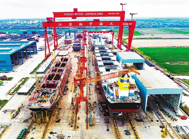 近日,江苏省太仓港经济技术开发区,扬子三井造船有限公司生产现场一派繁忙。今年以来,市场对新船需求增加,船舶制造行业订单增多。袁新宇摄(中经视觉)