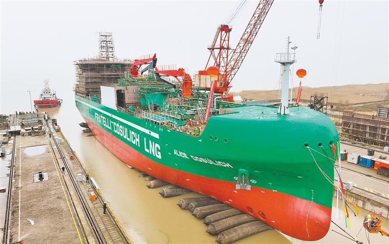 3月22日,由中集太平洋海工建造的8200立方米LNG加注船首制船(S1058),在江苏启东海工船舶工业园下水。该系列船采用先进的电力推进方案,运行经济、节能、环保。