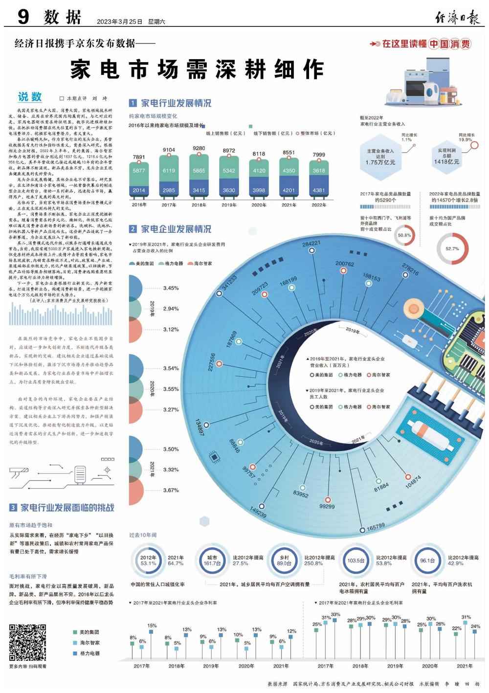 我国是家电生产大国、消费大国,家电领域技术研发、储备、应用在世界范围内均属前列。与之对应的是,家用电器刚性需求特征明显,数字化进程持续加快。在把拉动消费摆在优先位置的当下,进一步激发家电消费活力、挖掘家电消费潜力,意义重大。