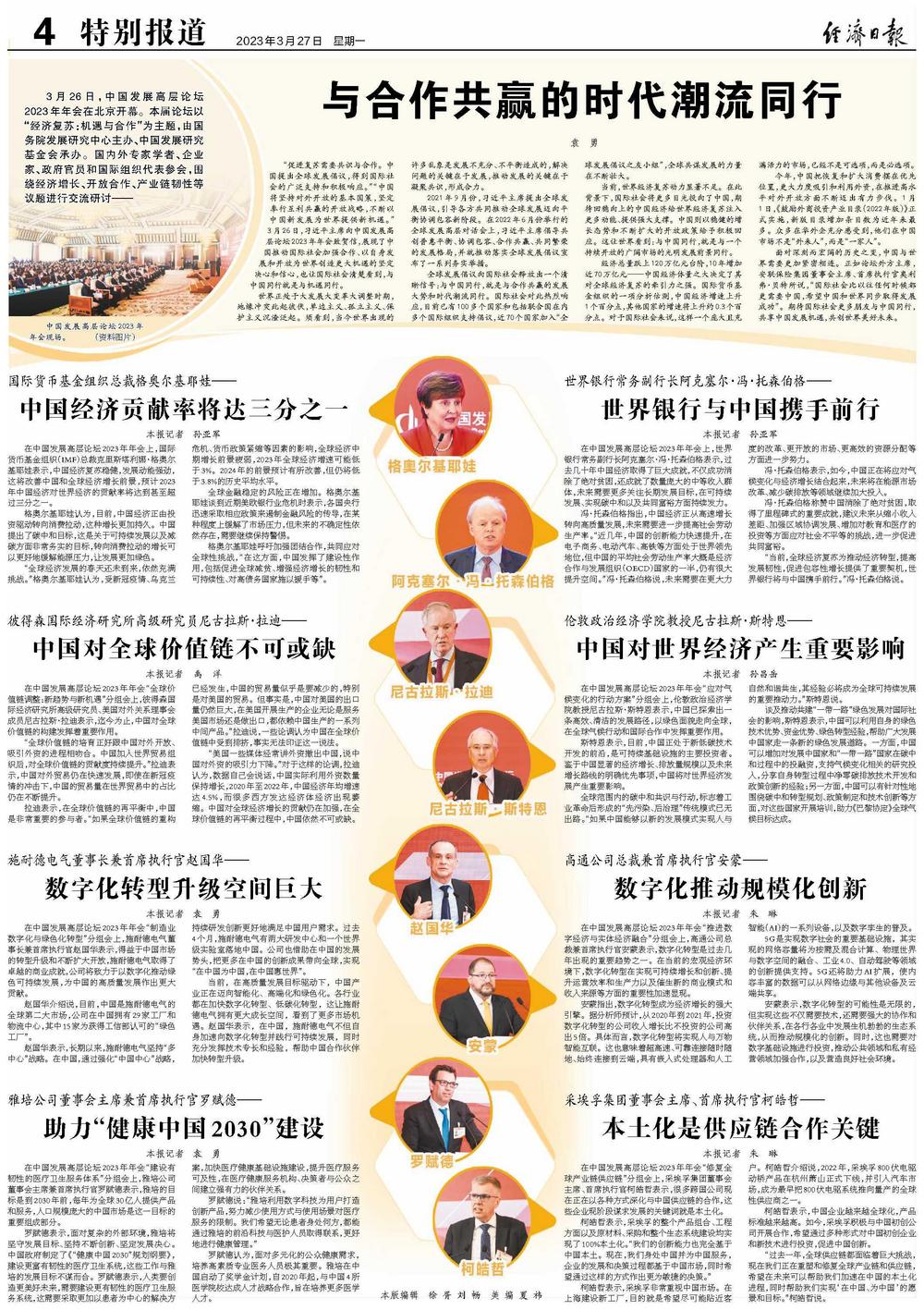 “促进复苏需要共识与合作。中国提出全球发展倡议,得到国际社会的广泛支持和积极响应。”“中国将坚持对外开放的基本国策,坚定奉行互利共赢的开放战略,不断以中国新发展为世界提供新机遇。”3月26日,习近平主席向中国发展高层论坛2023年年会致贺信,展现了中国推动国际社会加强合作、以自身发展和开放为世界创造更大机遇的坚定决心和信心,也让国际社会清楚看到,与中国同行就是与机遇同行。