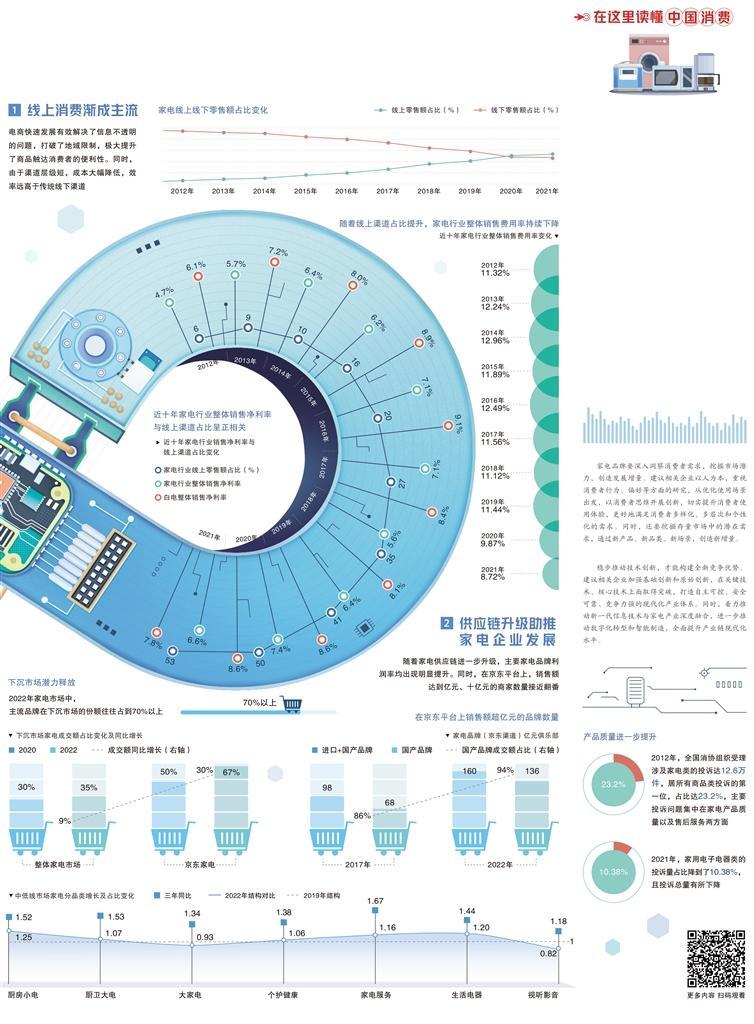 当前,我国家电市场正从“以新增需求为主”的增量市场步入“以更新换代为主”的存量市场,家电需求以换新为主。针对新的变化趋势,家电行业既要通过优化产业链供应链,加快家电产品迭代升级,还要深入研究新的消费需求特点,通过新品类、新场景寻找新增量。