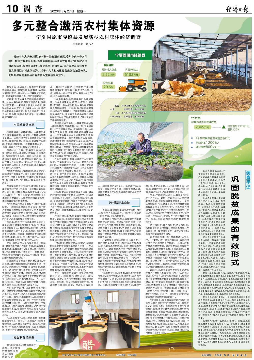 近年来,位于六盘山区的隆德县坚持发展壮大农村集体经济,巩固了脱贫成果,保持了村庄繁荣——累计投入资金2.52亿元,实现纯收益5182万元,总收益率达20.6%,经济效益和社会效益显著。作为人口仅有十万余人的山区小县,隆德县是如何做大农村集体经济“蛋糕”的?