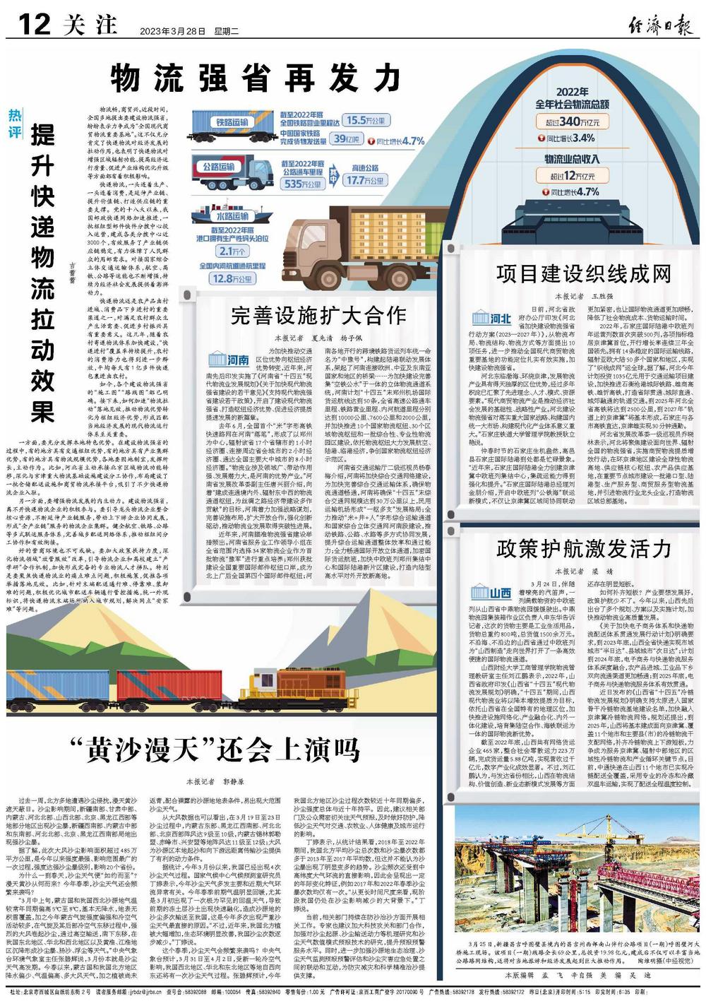 日前,河北省政府办公厅印发《河北省加快建设物流强省行动方案(2023—2027年)》,从物流布局、物流结构、物流方式等方面提出10项任务,进一步推动全国现代商贸物流重要基地的功能定位扎实有效实施,加快建设物流强省。