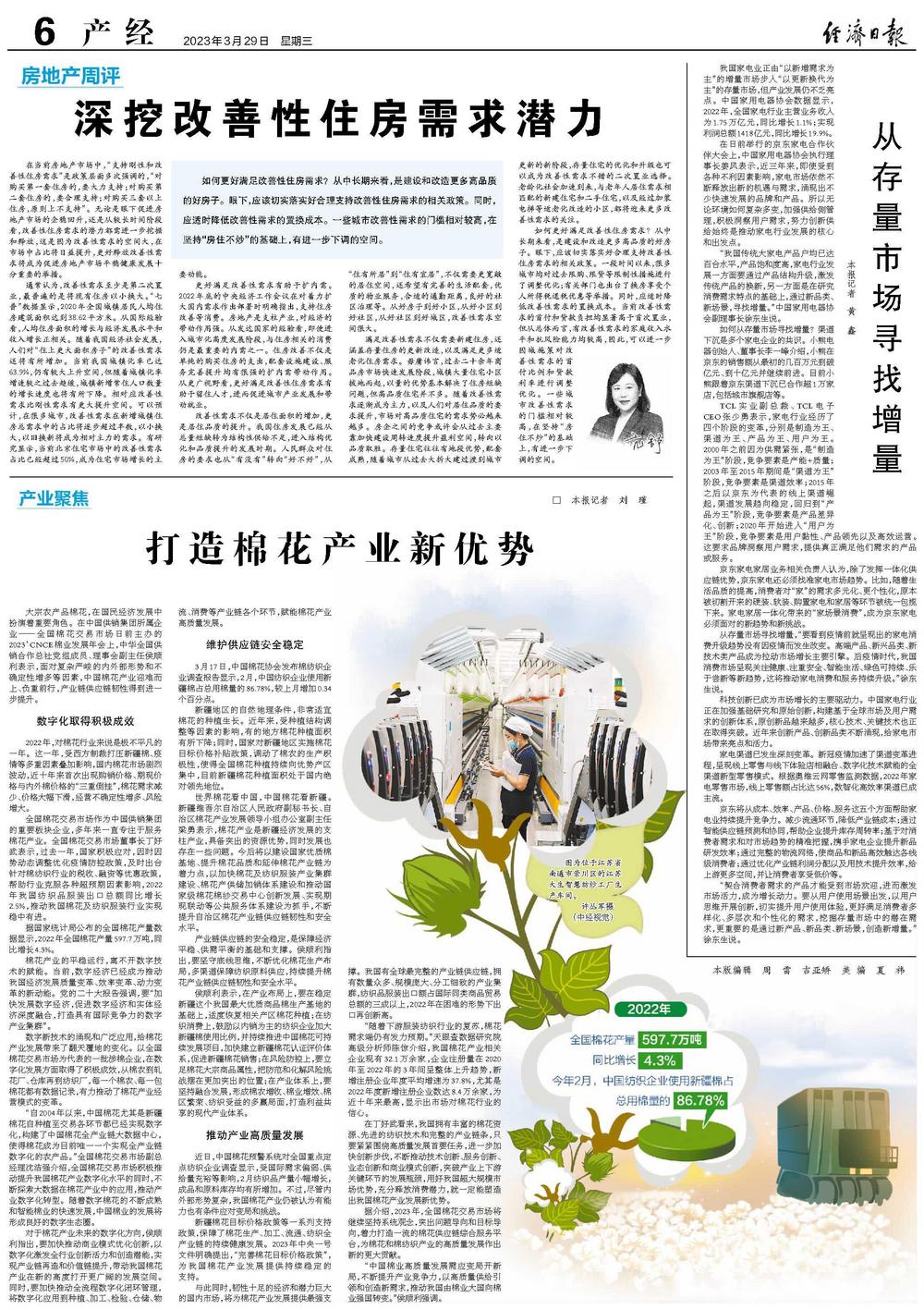 我国家电业正由“以新增需求为主”的增量市场步入“以更新换代为主”的存量市场,但产业发展仍不乏亮点。中国家用电器协会数据显示,2022年,全国家电行业主营业务收入为1.75万亿元,同比增长1.1%;实现利润总额1418亿元,同比增长19.9%。