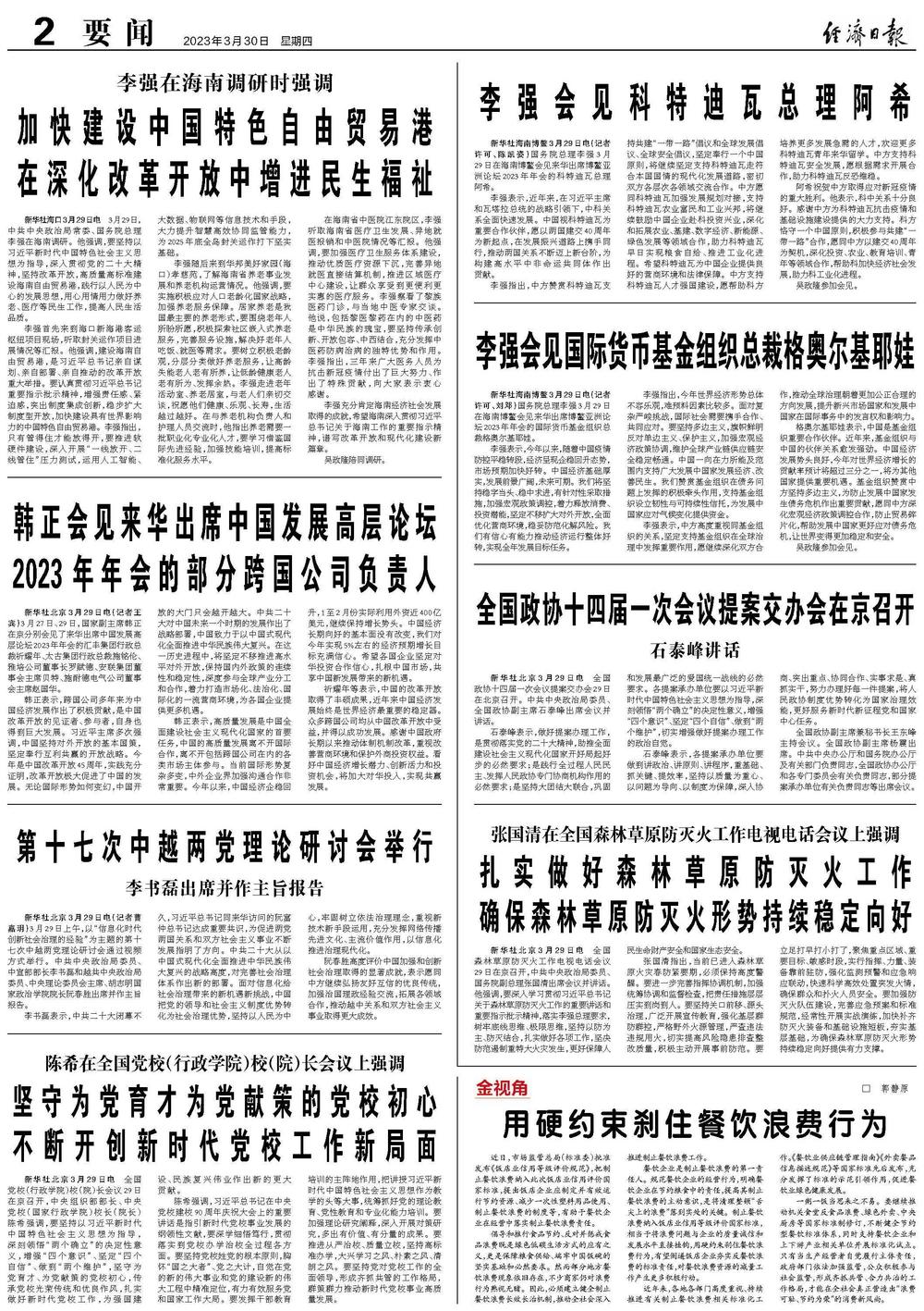 新华社海南博鳌3月29日电(记者许可、刘邓)国务院总理李强3月29日在海南博鳌会见来华出席博鳌亚洲论坛2023年年会的国际货币基金组织总裁格奥尔基耶娃。