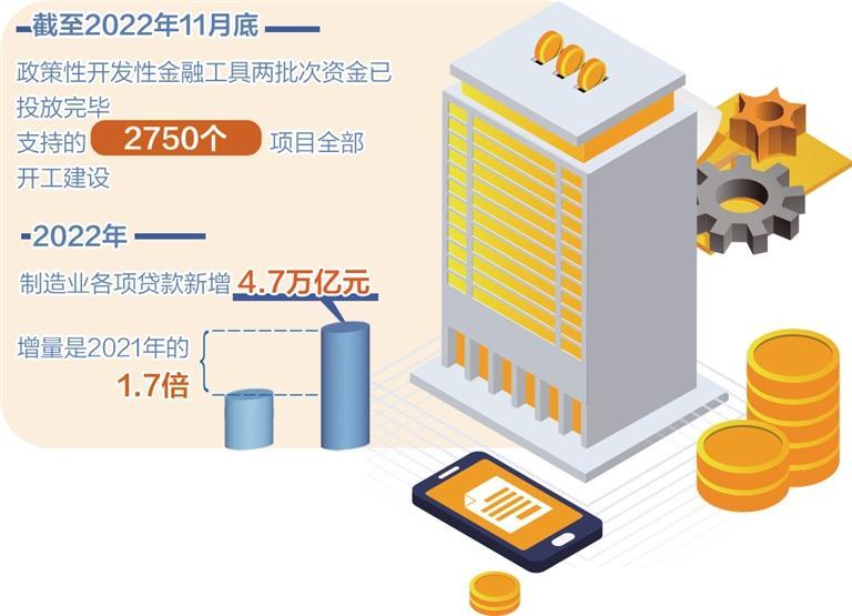 除了商业性金融,政策性、开发性金融也在着力增加制造业中长期贷款。截至2022年12月末,在国开行超过1万亿元的制造业贷款余额中,中长期贷款的占比已高达88%。“要大力支持关键核心技术攻关、重要物资储备、先进产能建设、数字化转型升级、保障产业链供应链安全稳定、设备更新改造等重点领域。”国开行相关负责人说。