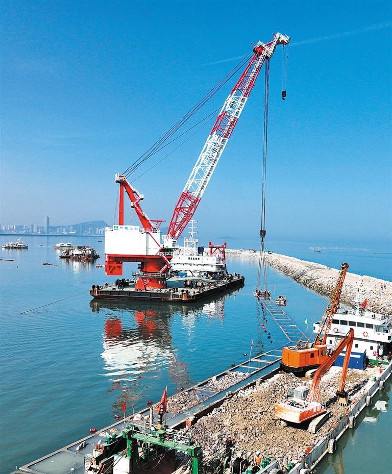 3月30日,江苏省连云港市连岛国家级中心渔港施工现场。中心渔港项目总投资约3.1亿元,预计全部工程将于年底完成,建成后可满足800艘以上渔船停泊装卸作业和补给需求,鱼货卸港量可达8万吨,将有效改善渔港作业环境,带动鱼货交易、渔业加工、渔船补给、渔业休闲等产业发展。