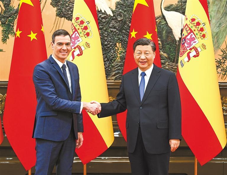 习近平强调,发展好中欧关系,需要欧方坚持战略自主。中欧都坚持多边主义,都维护联合国宪章宗旨和原则,都主张和平解决国际争端,双方理应是现代化道路上的合作者、共同应对全球性挑战的好朋友。中方愿同欧方本着独立自主、相互尊重、求同存异、互利共赢精神,开展全面对话合作,为世界和平与发展担当尽责。希望西班牙为促进中欧对话合作发挥积极作用。