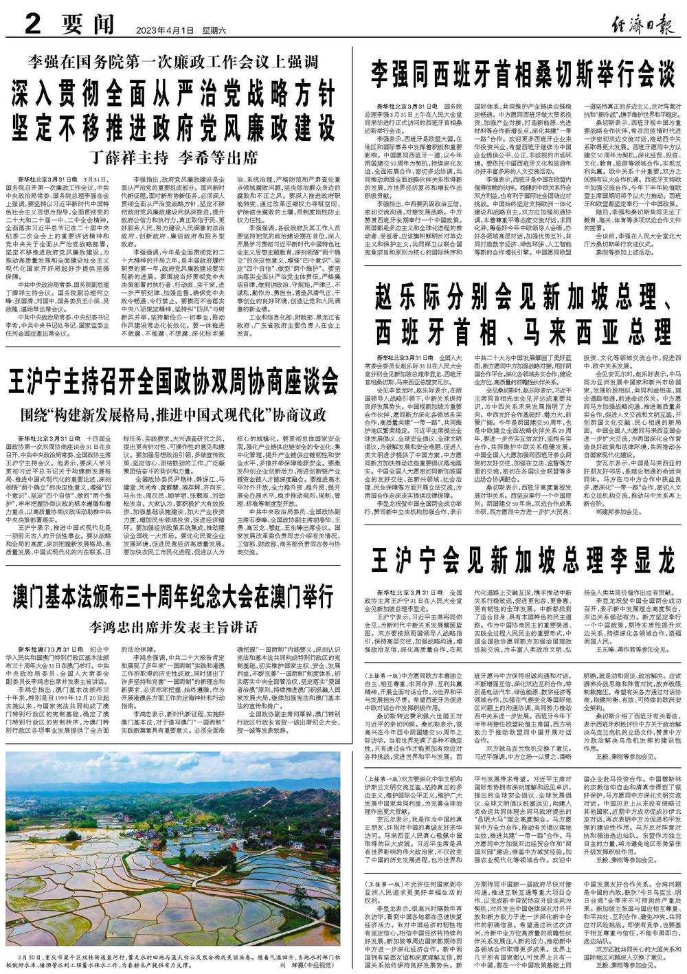 李显龙表示,很高兴时隔数年再次访华,看到中国各地都在迅速恢复经济活力。我对中国经济的韧性抱有坚定信心,相信中国经济将持续向好发展,新加坡等周边国家都期待同中方进一步深化经济合作。新中两国拥有坚固友谊和深度理解互信,两国关系始终保持良好发展势头。新方期待同中国新一届政府尽快对接沟通,推进互联互通等重大项目合作,以完成新中自贸协定升级谈判为契机,对外发出中国继续深化对外开放和新方致力于进一步深化新中合作的明确信息。希望通过我这次访问,为新中全方位高质量的前瞻性伙伴关系发展注入新的活力,推动新中各领域合作取得更多成果。世界上几乎所有国家都认可世界上只有一个中国,都在一个中国政策基础上同中国发展友好合作关系。台湾问题是中国的内政,鼓吹“今日乌克兰、明日台湾”会带来不可预测的严重后果。新加坡主张国与国应相互尊重、和平共处、互利合作、避免冲突,共同应对风险挑战。即使有竞争,也要基于相互尊重与信任,不能非黑即白,选边站队。