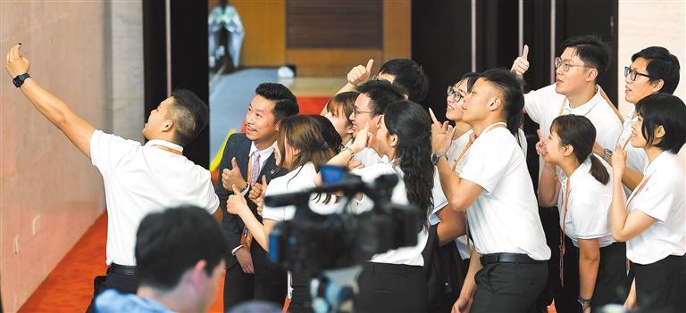 ▼3月30日,来自香港和澳门的志愿者在博鳌亚洲论坛国际会议中心合影,记录下美好瞬间。