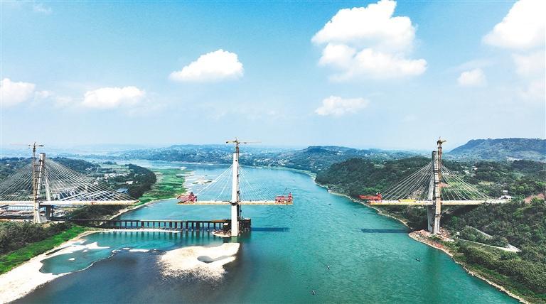 3月29日,在位于长江四川省宜宾市江安县段的江安长江二桥项目现场,建设者正在安装桥面钢梁。大桥预计于5月底合龙。该桥建成后将极大提升江安县城乡交通运输水平,缓解区域内长江两岸交通压力,提升区域内路网快捷通畅能力。