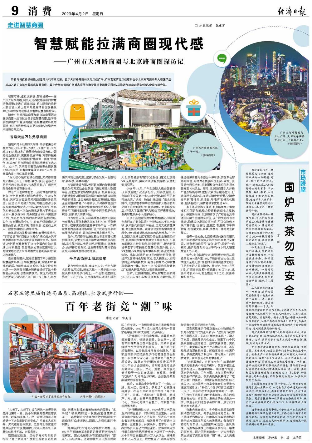 在智慧升级方面,天河路商圈的智慧商圈建设如何真正让企业获益?“通过搭建大数据平台,以数据赋能智慧商圈建设,拓展看不见的数据维度,增加微观数据对客流和营业额影响分析模型,让客流统计颗粒度更精细,帮助企业更懂消费者。”石姗表示,天河路商圈还打通了商圈内主要商业综合体的会员系统,让消费者可以随时在商圈小程序中同步累积会员积分,创新多元消费体验。