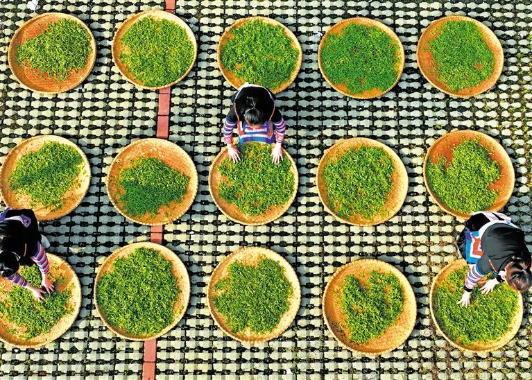 4月1日,湖南省常宁市塔山瑶族乡,茶农利用晴好天气晾晒新茶。近年来,当地利用自然条件优势,大力发展生态有机茶种植,并将茶叶产业与文旅相结合,带动村民增收致富,助推全面乡村振兴。 刘东华摄(中经视觉)
