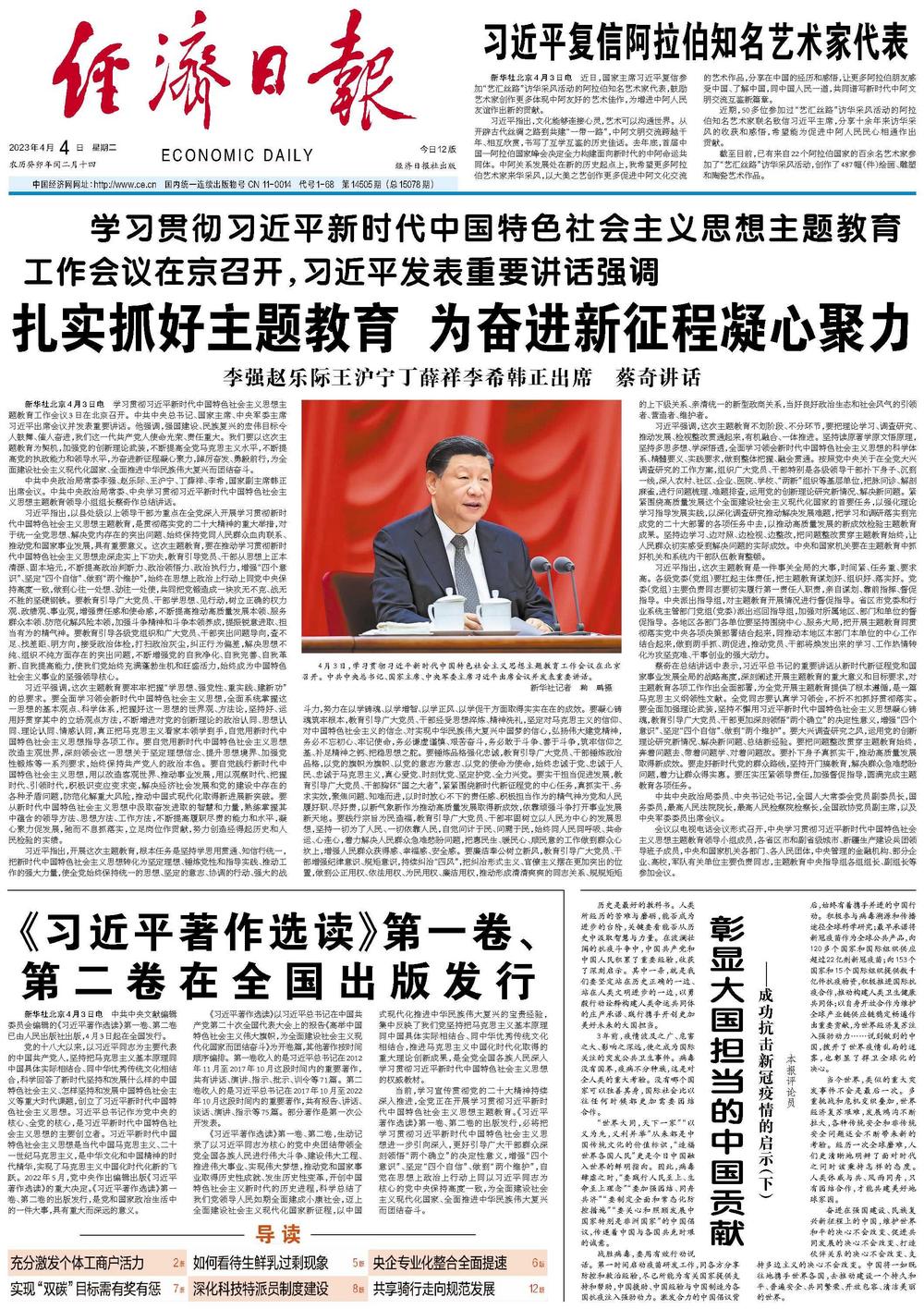 当前,学习宣传贯彻党的二十大精神持续深入推进,全党正在开展学习贯彻习近平新时代中国特色社会主义思想主题教育。《习近平著作选读》第一卷、第二卷的出版发行,必将把学习贯彻习近平新时代中国特色社会主义思想进一步引向深入,更好引导广大干部群众深刻领悟“两个确立”的决定性意义,增强“四个意识”、坚定“四个自信”、做到“两个维护”,自觉在思想上政治上行动上同以习近平同志为核心的党中央保持高度一致,为全面建设社会主义现代化国家、全面推进中华民族伟大复兴而团结奋斗。