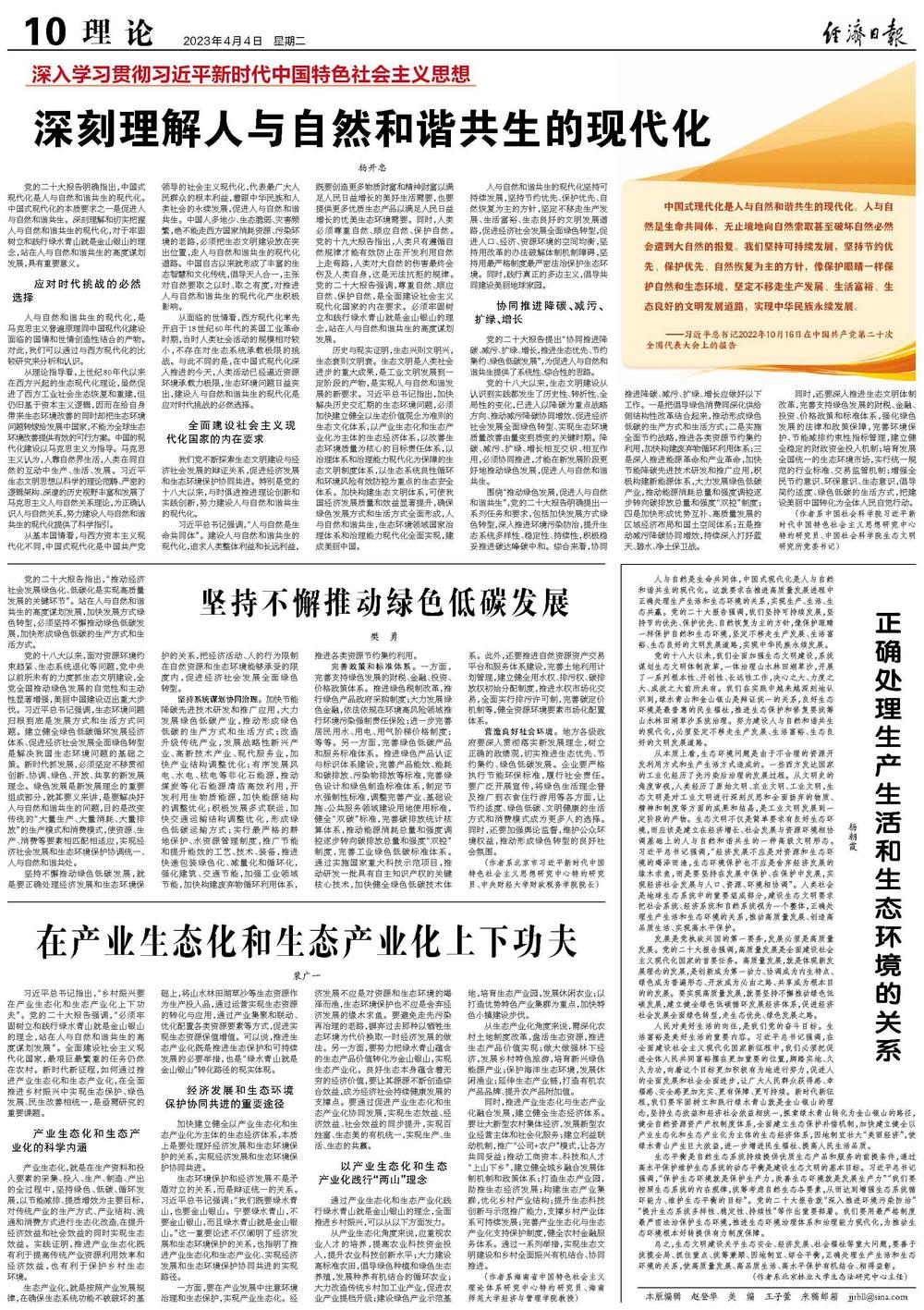 生态环境保护和经济发展不是矛盾对立的关系,而是辩证统一的关系。习近平总书记强调:“我们既要绿水青山,也要金山银山。宁要绿水青山,不要金山银山,而且绿水青山就是金山银山。”这一重要论述不仅阐明了经济发展和生态环境保护的关系,也指明了推进产业生态化和生态产业化、实现经济发展和生态环境保护协同共进的实现路径。