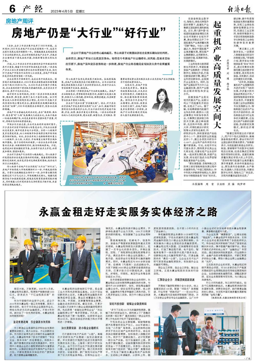想企业之所想、急企业之所急、解企业之所难,正是永赢金租服务实体的行动自觉。