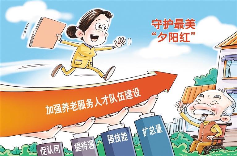 近年来,随着我国社会老龄化程度越来越高,如何让老年人拥有健康幸福的晚年,成为社会持续关注的话题。我国养老服务人才队伍存在总量不足、专业化水平不高等问题,守护最美“夕阳红”,实现养老服务高质量发展,加快养老服务人才队伍建设是关键。民政部表示,我国将通过进一步发挥院校培养人才主渠道作用,加强与家政、物业、医疗护理等关联领域合作,积极培育广泛服务于老年人生活照护的养老服务志愿者队伍等措施,不断补充养老服务人才队伍。还将会同相关部门出台措施保障养老护理员的薪酬待遇,支持和引导养老服务机构建立基于岗位价值、能力素质、业绩贡献的薪酬分配制度。 (时 锋)