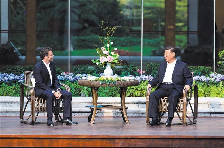 习近平指出,这两天,我们在北京和广州进行了深入、高质量交流,增进了了解和互信,为今后中法两国在双边和国际层面的合作明确了方向。很高兴我们在中法、中欧关系以及很多国际和地区问题上有很多相同或相似看法,这体现了中法关系的高水平和战略性。我愿同你继续保持密切战略沟通,推动中法全面战略伙伴关系提升至新高度。
