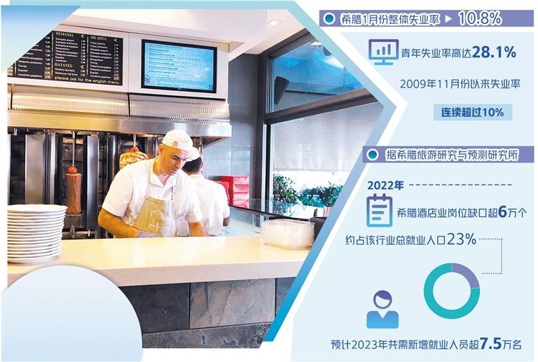 作为希腊经济支柱的旅游业因受到全球疫情限制措施的余震影响,同样面临着大面积劳动力缺口,疫情期间的旅游业停滞导致大量旅游和酒店从业人员流失,面对后疫情时代旅游业的强势复苏,旅游产业对于劳动力有着爆炸性的需求。根据希腊旅游研究与预测研究所2022年的调查数据,希腊酒店业有超6万个岗位缺口,约占该行业总就业人口的23%,预计2023年劳动力短缺问题将进一步加剧,共需超过7.5万名新增就业人员,其中约一半的缺口人员为服务员、接待员、咖啡师、园丁等。有的酒店和企业甚至已经开始评估极端解决方案,例如在旅游旺季招聘领取养老金的退休者或休假教师进行兼职工作。希腊厨师联合会主席齐索普洛斯称,由于“用工难”问题,酒店业和餐饮业商家将被迫采取特殊办法来维持经营,包括减少餐桌数量、招募亲友为员工、减少菜品种类、缩短营业时间等,但这同时意味着商家服务质量的打折和口碑的下降。